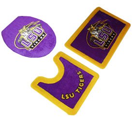 These three piece bath sets are a fun way to spruce up your bathroom. Fun for students, alumni, and fans alike. These rug sets make a great pair with our collegiate shower curtains. The bath mat is 20"X30", the seat cover and pedestal mats are standard size. 100% acrylic with non-skid back